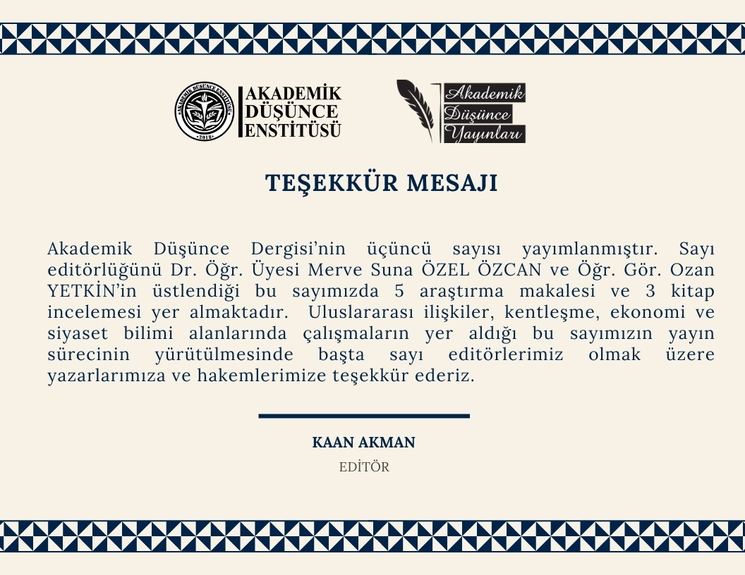 Akademik Düşünce Dergisi'nin 3. Sayısı (Bahar/2021) çıktı. Linkten ulaşabilirsiniz. https://dergipark.org.tr/tr/pub/akademikdusunce