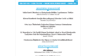 DERGİ KAPAĞI YAYIN SAYFASI YAYINEVİ 3. SAYI DOSYALARI # ARAŞTIRMA MAKALELERİ YAZAR DOSYA 1 Sakin Kent (Cittaslow) ve Ekoturizmin Birlikte Uygulanması: Türkiye Bilal KAYAOĞLU & Ahmet YAZAR 2 Küresel Kentlerde Emeğin Bireyselleşmesi Sürecinde Covid-19 Etkisi Yasemin YALNIZOĞLU 3 Orta Asya Ülkelerinde Doğrudan Yabancı Sermaye Yatırımlarının Belirleyicileri Büşra DOĞAN 4 II. Meşrutiyet ve Tek Partili Dönem İçerisinde Askeri ve Siyasi Bürokraside…