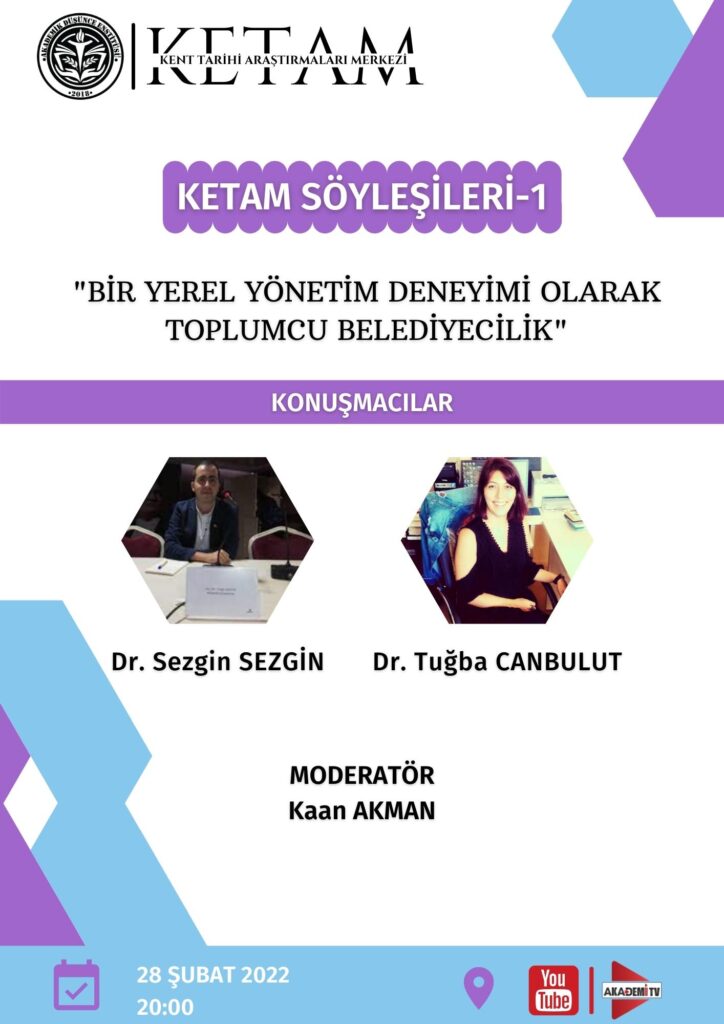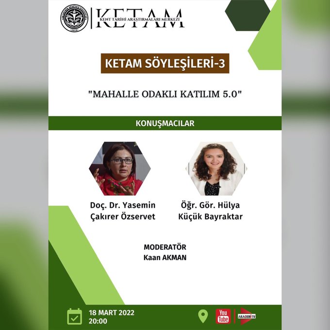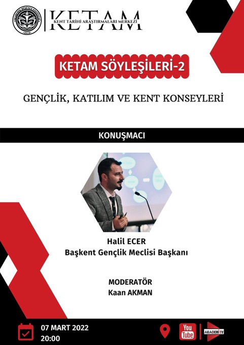 2021 yılında kurulan Kent Tarihi Araştırmaları Merkezi (KETAM) bünyesinde düzenlenen söyleşiler başlıyor. Genel Sekreterimiz Kaan AKMAN’ın moderatörlüğünü yapacağı söyleşiler Youtube Akademi TV’den canlı yayın ile izlenebilecek.